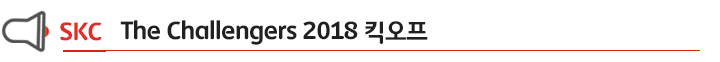 5월 28일 본사 주니어 구성원의 발표 경진대회 ‘SKC The Challengers 2018’을 킥오프 미팅이 열렸습니다. ‘SKC The Challengers 2018’는 화학사업부문에서 매년 진행해오던 발표대회를 인더스트리 사업부문과 투자사 MCNS, SKC HT&M까지 확장한 주니어 구성원 대상 프로그램입니다. 기존의 발표 경진 대회가 구성원 개인 단위의 업무를 확장해보고 도전과 패기 의식을 함양하는 것을 주 목적으로 운영 되었다면, ‘SKC The Challengers 2018’는 개인이 아닌 원 컴퍼니 차원에서 사업부문을 넘나드는 신 사업 아이디어를 발굴하는 것으로 업그레이드 되었습니다. 또한 사업 관련 아이디어 외에도 주요 경영 현안인 공유 인프라 및 사회적 가치를 통한 비즈니스 모델 혁신이 반영된 창의적 아이디어를 발굴하는 데에도 주안점을 두었습니다. :namespace prefix = "o" /> :namespace prefix = "o" />