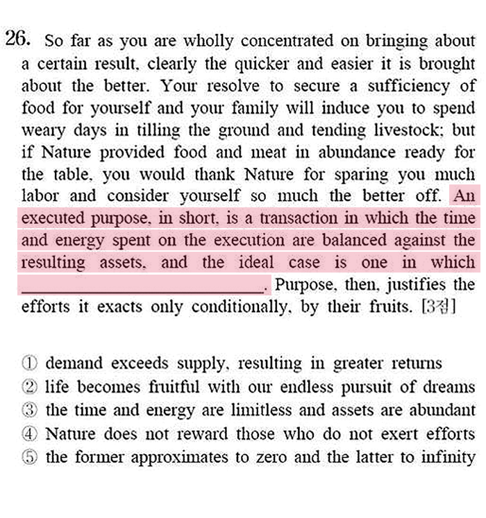 엄청난 난이도의 지문으로 인해 응시생들은 한 지문에 많은 시간을 할애할 수 밖에 없었다고 합니다.