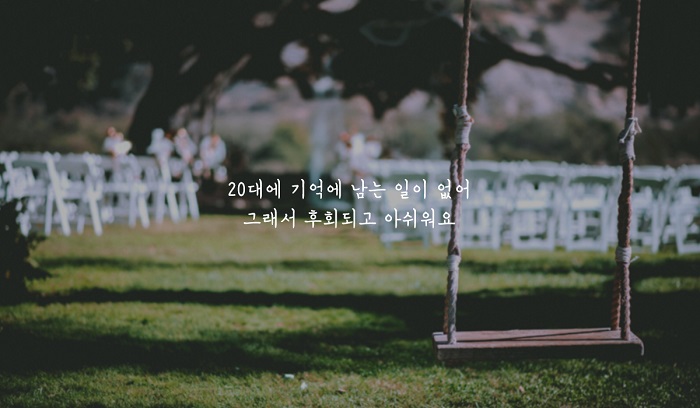 A) 지난 20대를 뒤돌아보면 생각보다 너무 빨리 지나간 것 같습니다. 그 나이에 할 수 있는 것들을 많이 경험하지 못한 것이 아쉬움으로 남습니다.