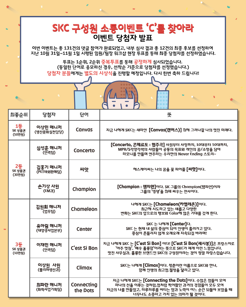SKC 구성원 소통이벤트 ‘C’를 찾아라 당첨자 발표